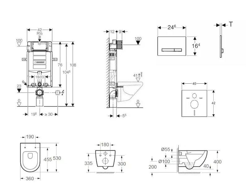- vybaven trubkovou chráničkou pro přívodní potrubí k připojení sprchovacích WC Geberit AquaClean