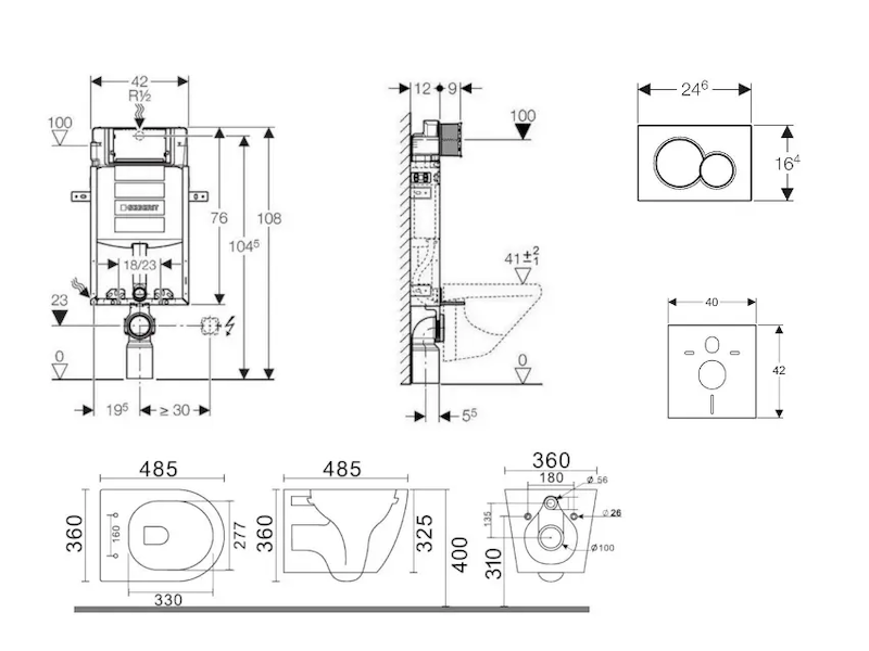 - vybaven trubkovou chráničkou pro přívodní potrubí k připojení sprchovacích WC Geberit AquaClean