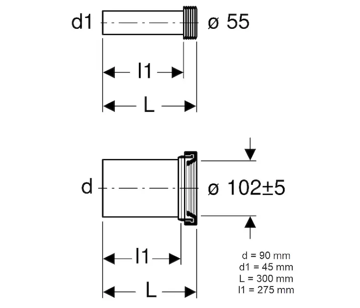 Geberit Příslušenství - Odpadní připojovací sada pro závěsné WC 152.441.46.1
