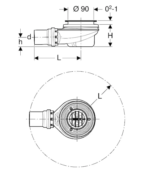 Geberit Příslušenství - Sprchová odpadní souprava d90, s krytem odpadního ventilu, chrom 150.551.21.1