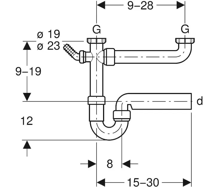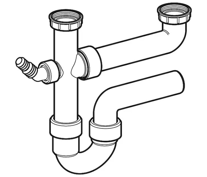 Geberit Příslušenství - Zápachová uzávěrka pro dvojdřez, s úhlovou hadicovou objímkou, vývod vodorovný 152.715.11.1