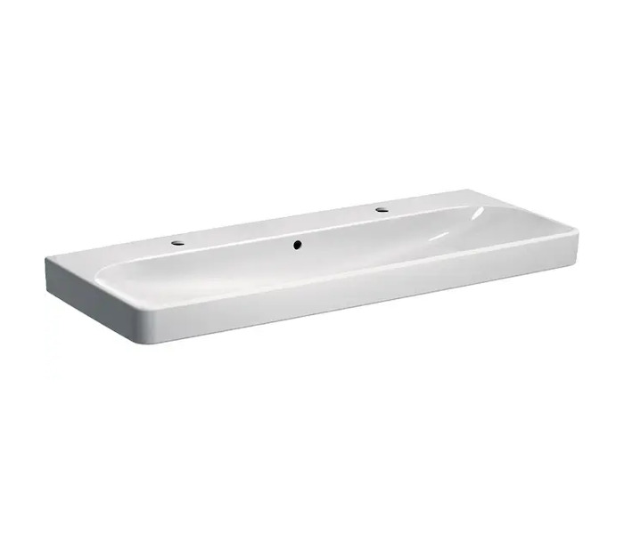 Geberit Smyle Square - Dvojumyvadlo 120x48 cm, s přepadem, 2 otvory pro baterie, bílá 500.253.01.1