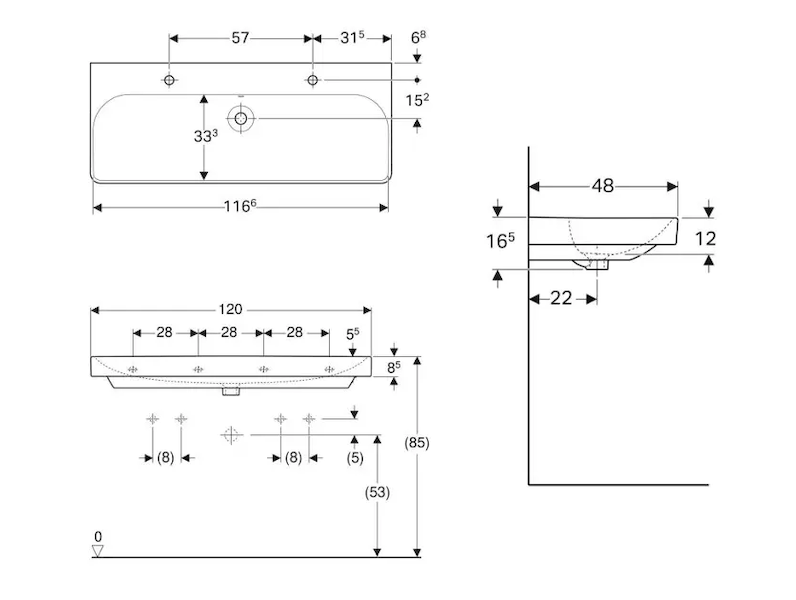 Geberit Smyle Square - Dvojumyvadlo 120x48 cm, s přepadem, bez otvoru pro baterii, bílá 500.225.01.1 Skladem u dodavatele 2 ks |