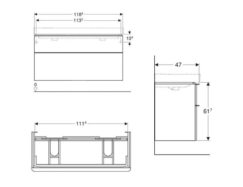 Geberit Smyle Square - Umyvadlová skříňka, 118x47x62 cm, 2 zásuvky, lesklá bílá/matná bílá 500.356.00.1