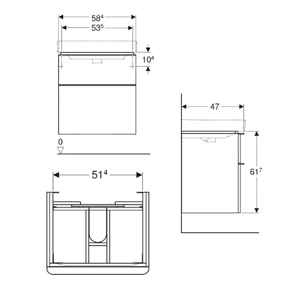 Geberit Smyle Square - Umyvadlová skříňka, 58x47x62 cm, 2 zásuvky, lesklá bílá/matná bílá 500.352.00.1 Expedice do 3-4 týdnů |