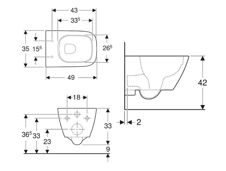 - jednoduché upevnění pomocí upevnění ke stěně Geberit typ EFF2 pro WC
