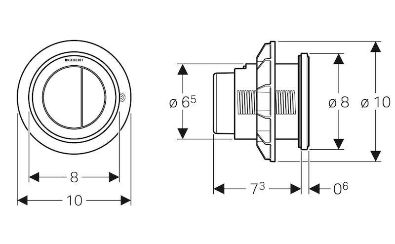 - Kombinovatelný s ovládacími tlačítky Geberit pro 1 množství splachování a splachování Start/Stop nebo krycí deskou Geberit