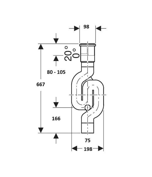 - Výška vodního uzávěru: 70 mm (2 1/2")