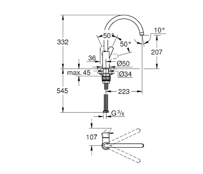 - GROHE Zero vedení vody uvnitř - bez niklu a olova