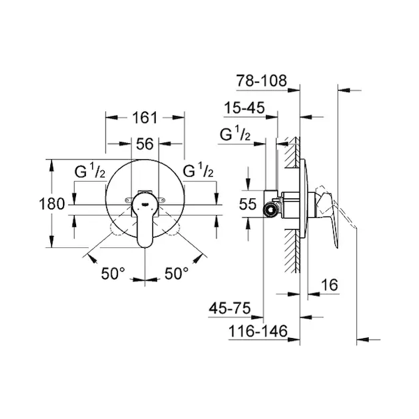 Grohe BauEdge - Sprchová baterie pod omítku s tělesem, chrom 29078000