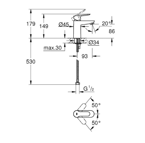 Grohe BauEdge - Umyvadlová baterie, chrom 32858000