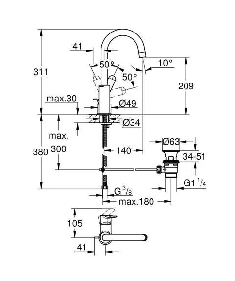 Grohe BauEdge - Umyvadlová baterie s výpustí, chrom 23760000