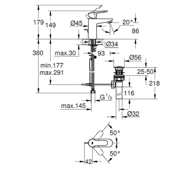 Grohe BauEdge - Umyvadlová baterie, s výpustí, chrom 32819000