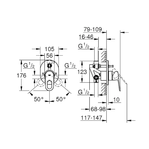 Grohe BauLoop - Vanová baterie pod omítku, s tělesem, chrom 29041000