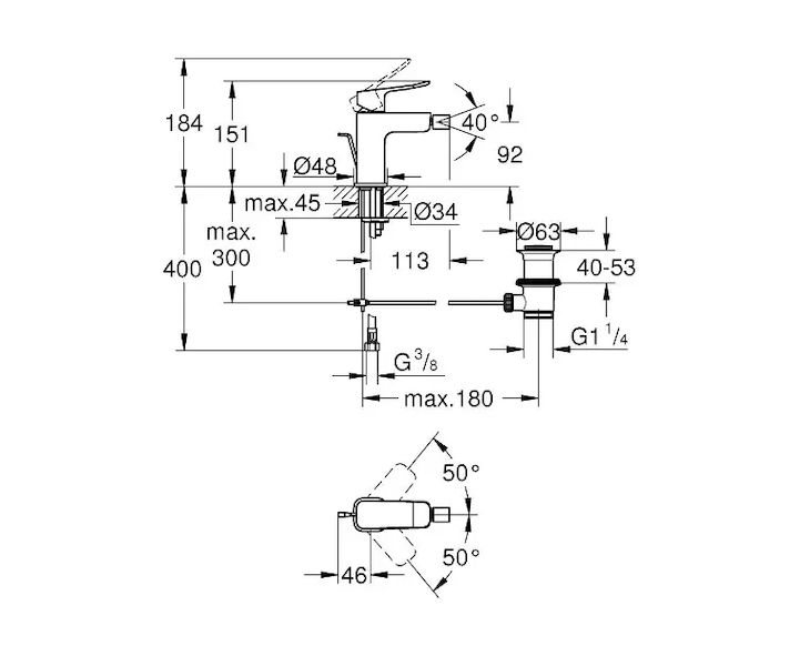 Grohe Dice - Bidetová baterie s výpustí, chrom 1018770000 Skladem u dodavatele 4 ks |