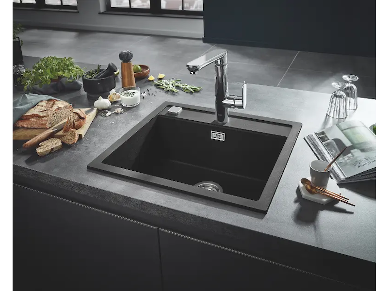 Grohe Dřezy - Kompozitní dřez K700 s automatickým odtokem, 56x51 cm, granitová černá 31651AP0