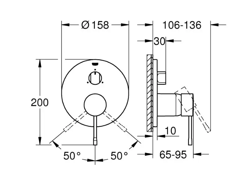 - kovová rozeta s možností dodatečného upevnění polohy až o 6°