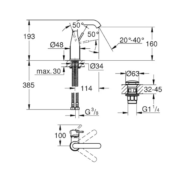 Grohe Essence - Umyvadlová baterie s výpustí Push-Open, chrom 23798001