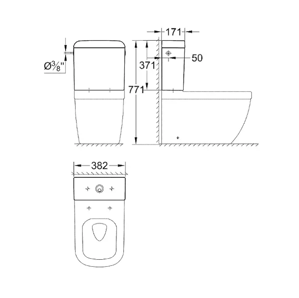 Grohe Euro Ceramic - Splachovací nádrž, 38x17 cm, boční napouštění, alpská bílá 39333000