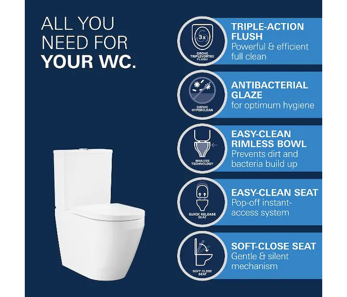 Grohe Euro Ceramic - WC kombi se sedátkem SoftClose, vario odpad, spodní napouštění, Triple Vortex, alpská bílá 102513SH00