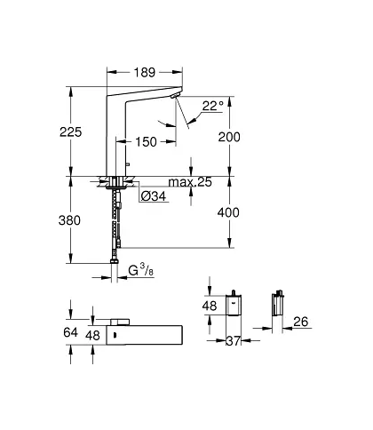 Grohe Eurocube E - Infračervená elektronická umyvadlová baterie se směšovačem, chrom 36441000