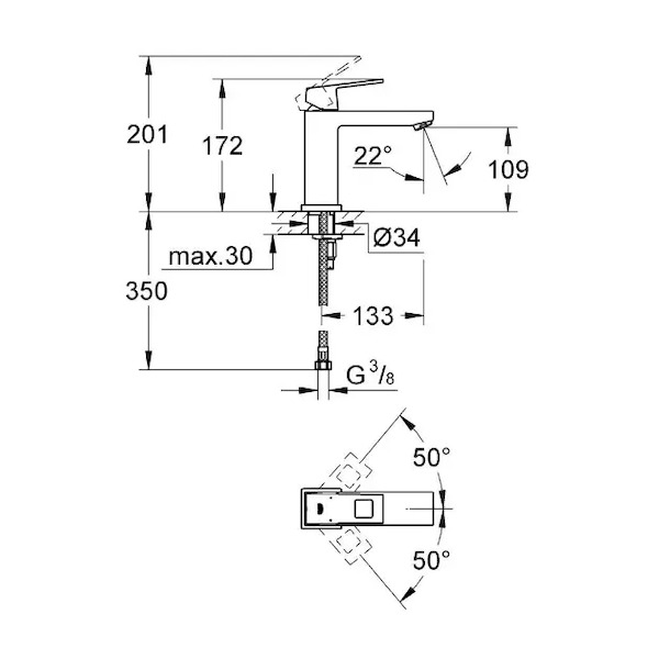 Grohe Eurocube - Umyvadlová baterie, chrom 23446000