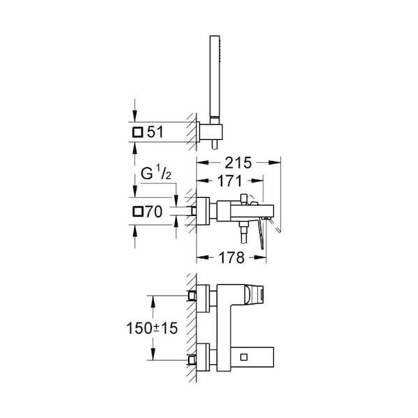 Grohe Eurocube - Vanová baterie s příslušenstvím, chrom 23141000