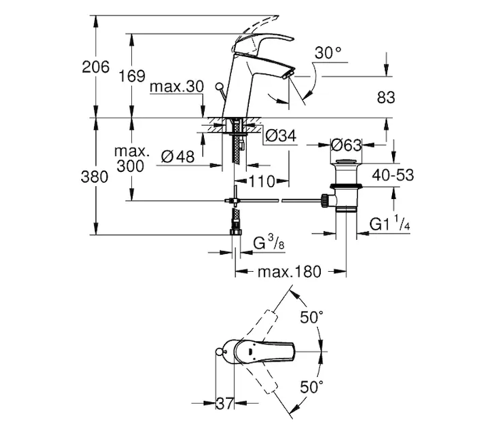 Grohe Eurosmart - Umyvadlová baterie s výpustí, chrom 23322001
