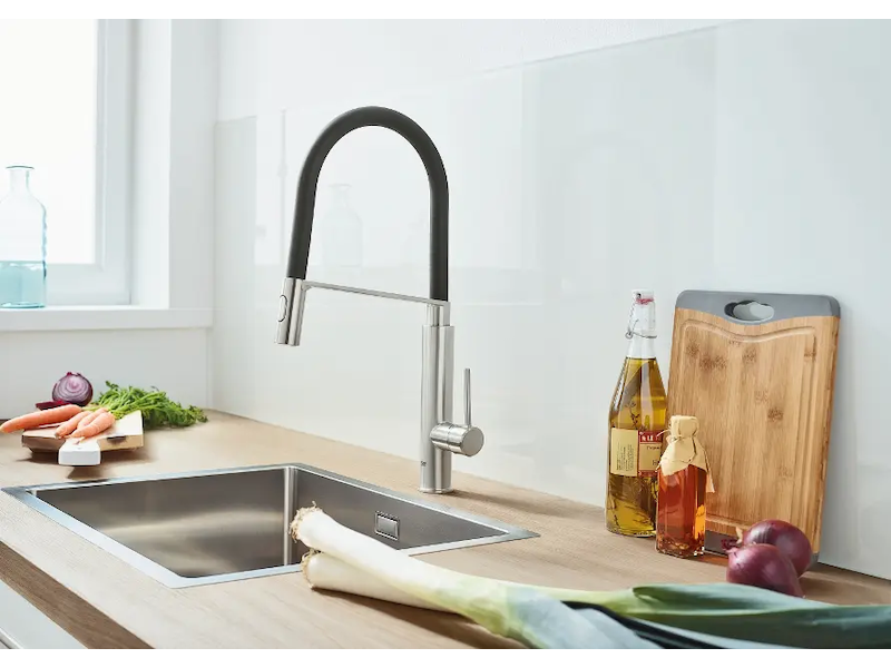 - s flexibilní hygienickou GROHFlexx kitchen hadicí z materiálu santoprene
