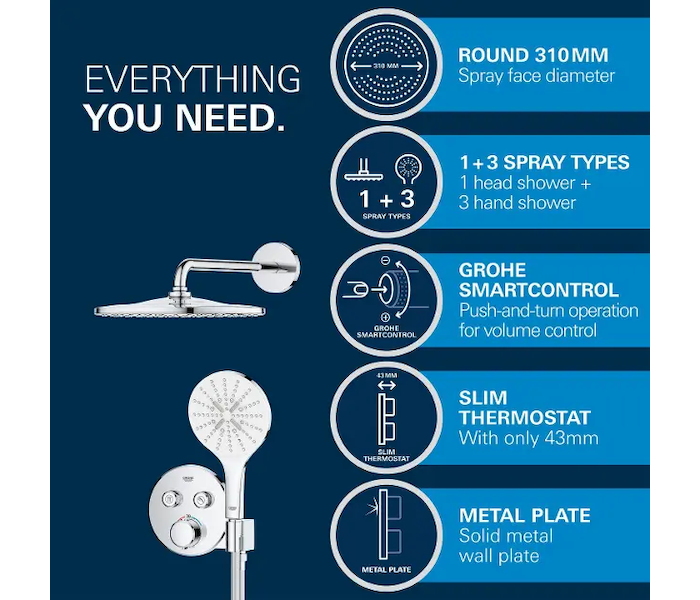 Grohe Precision SmartControl - Sprchový set s termostatem pod omítku, průměr 31 cm, 3 proudy, chrom 34877000