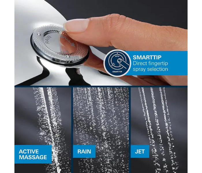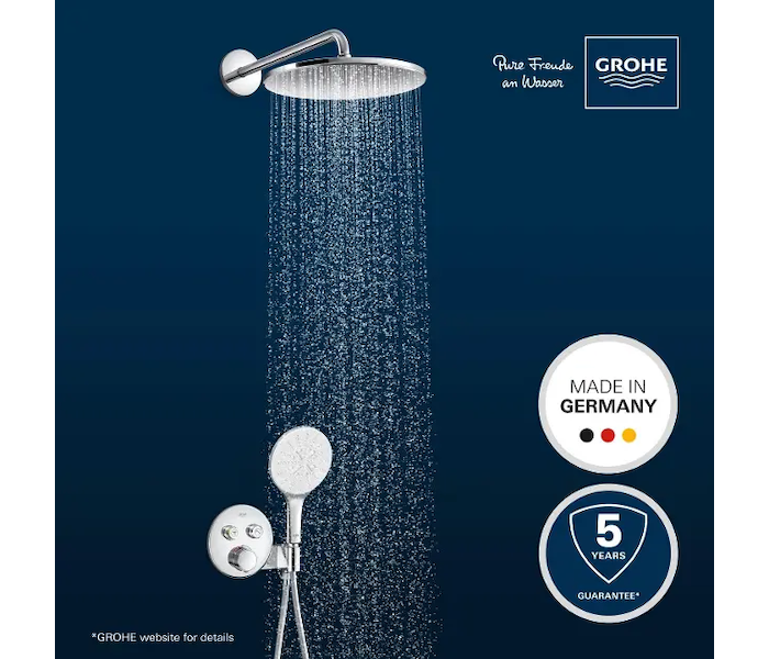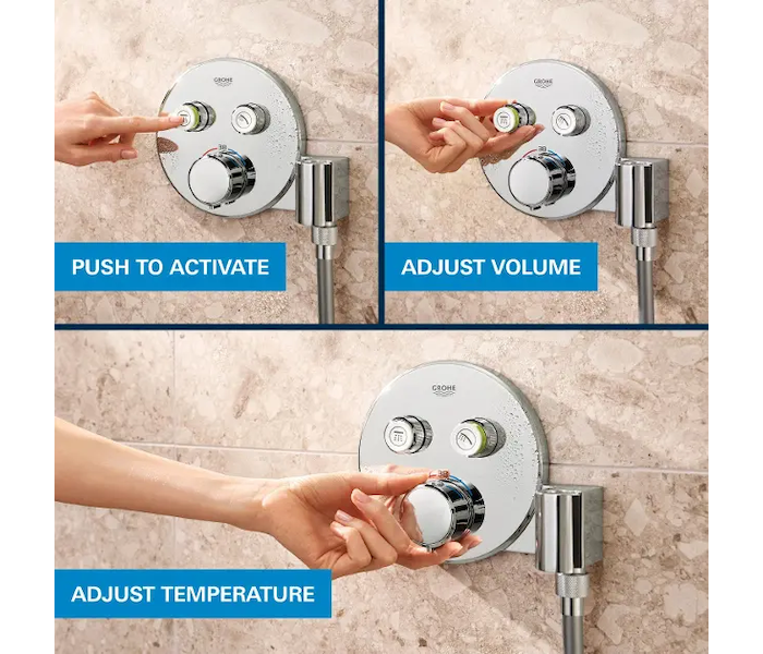- GROHE SmartControl - snadné ovládání sprchy, zvolte požadovaný zdroj proudu a nastavte množství vody od úsporného po plný proud pouhým otočením tlačítka