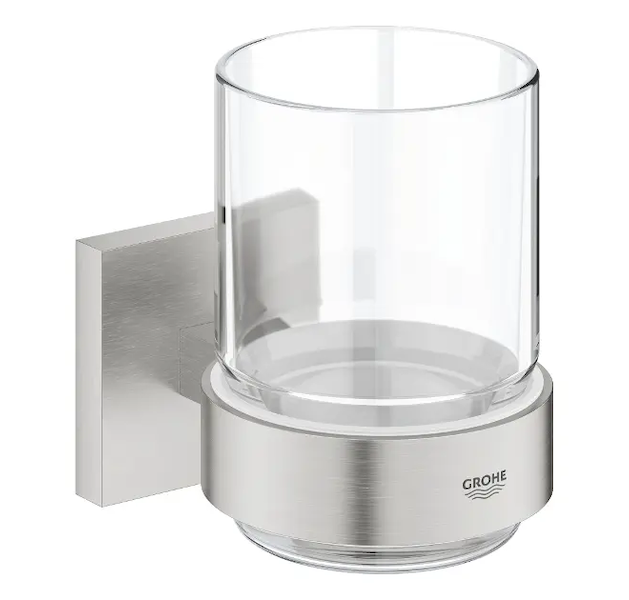 Grohe QuickFix Start Cube - Sklenka na kartáčky a pastu, s držákem, sklo/supersteel 41097DC0