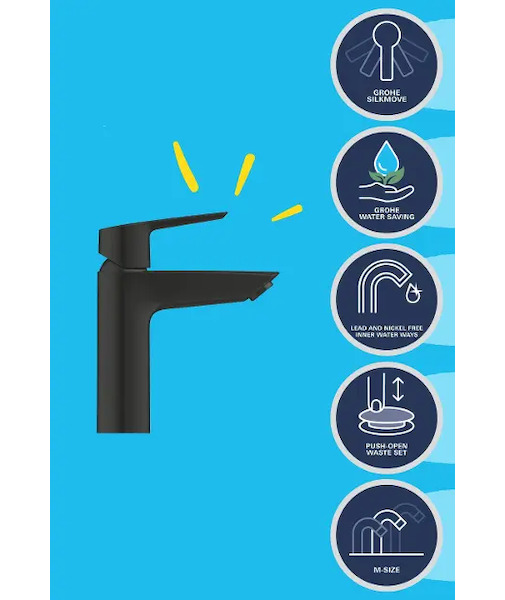 Grohe QuickFix Start - Umyvadlová baterie s výpustí Push-Open, matná černá 242042432