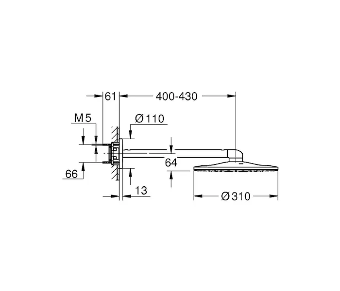 - horizontální sprchové rameno 430 mm