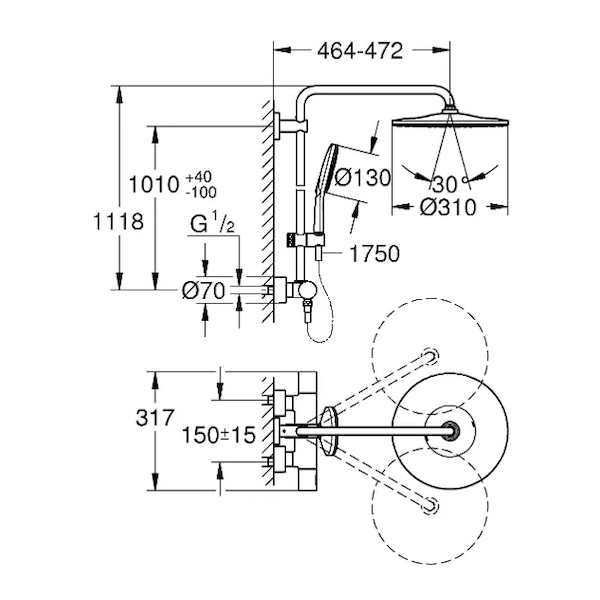 - GROHE QuickFix nastavitelný horní držák