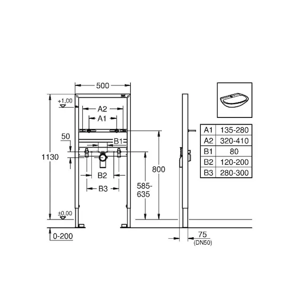 Grohe Rapid SL - Předstěnová instalace pro umyvadlo, stavební výška 113 cm 38554001