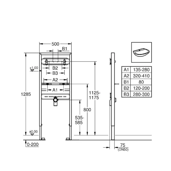 Grohe Rapid SL - Předstěnová instalace pro umyvadlo, stavební výška 130 cm 38546000
