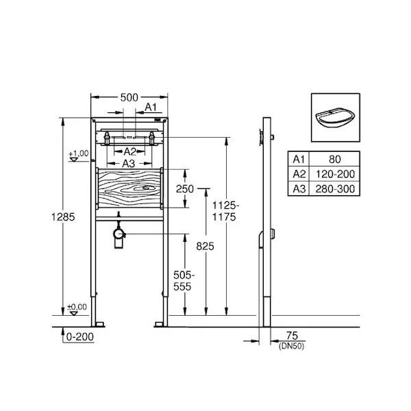 Grohe Rapid SL - Předstěnová instalace pro výlevku, stavební výška 130 cm 38544000