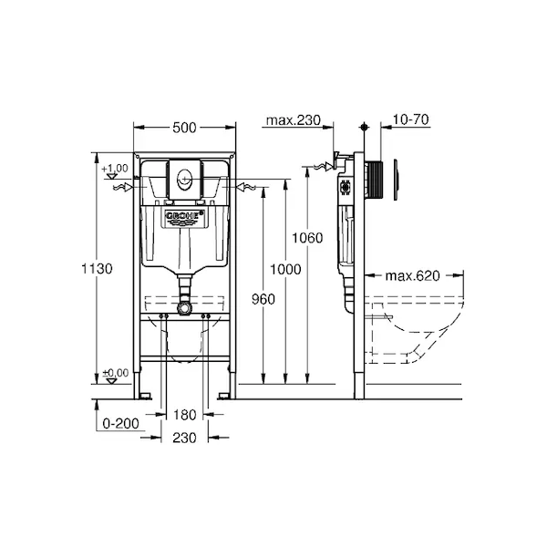 Grohe Rapid SL - Předstěnová instalace pro závěsné WC, ovládací tlačítko Skate Air, chrom 39442000