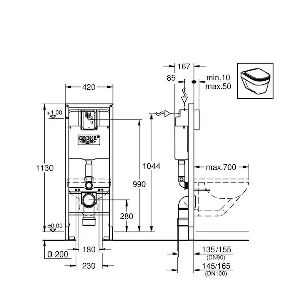 Grohe Rapid SL - Předstěnová instalace pro závěsné WC, se splachovací nádržkou, pro bezbariérové využití 38675001