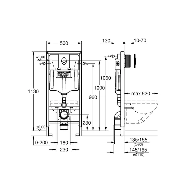 Grohe Rapid SL - Předstěnový instalační prvek pro závěsné WC, nádržka GD2, ovládací tlačítko Skate Air, alpská bílá 38764001