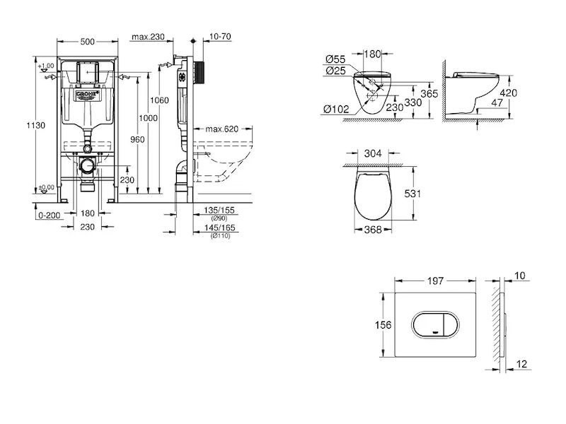- WC keramika s plochou menší než 205 mm vyžaduje dodatečné příslušenství 38 779 000