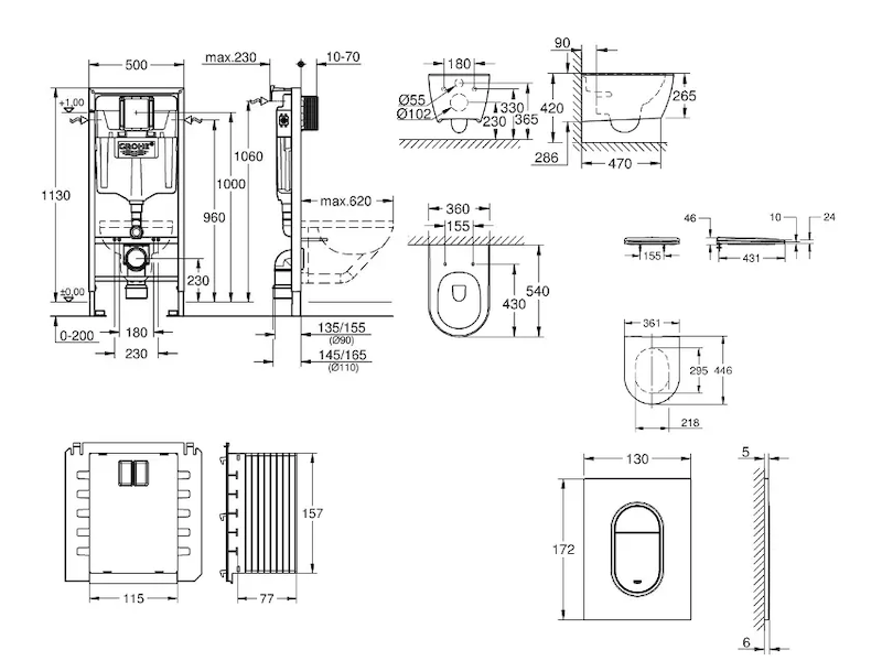 Grohe Rapid SL - Set předstěnové instalace, klozetu, sedátka SoftClose a tlačítka Arena Cosmopolitan S, kartáčovaný Hard Graphite SANI11BB5124 Obvykle do 180 dnů |