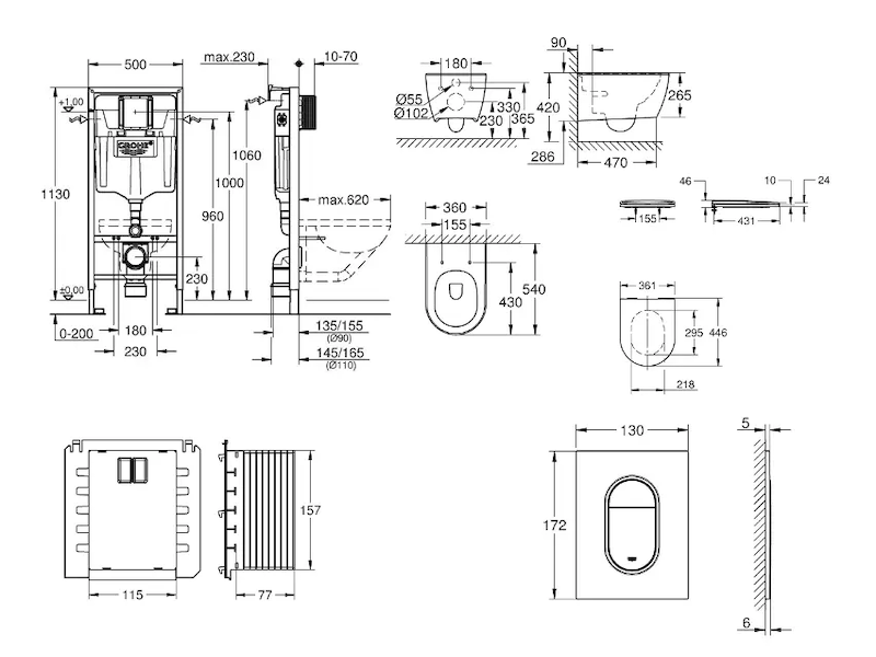Grohe Rapid SL - Set předstěnové instalace, klozetu, sedátka SoftClose a tlačítka Arena Cosmopolitan S, kartáčovaný Hard Graphite SANI11BB5124 Obvykle do 180 dnů |