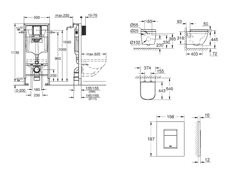 - WC keramika s plochou menší než 205 mm vyžaduje dodatečné příslušenství 38 779 000
