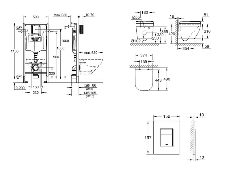 - pro vertikální nebo horizontální použití splachovacích tlačítek