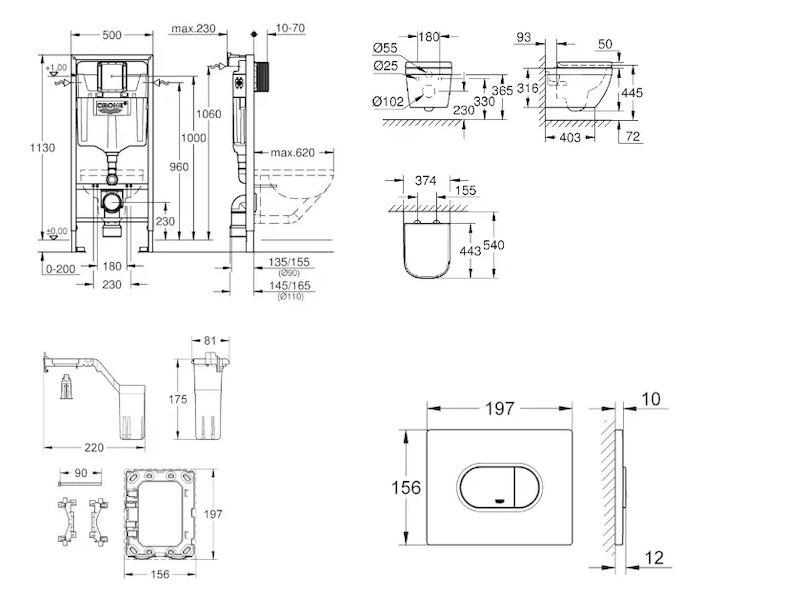 - pro všechna splachovací tlačítka GROHE s rozměry 156 x 197 mm