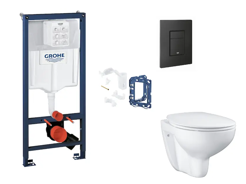 Grohe Rapid SL - Set předstěnové instalace, klozetu, sedátka SoftClose, tlačítka Even a sady pro vhazování tablet, phantom black SANI11BB5133