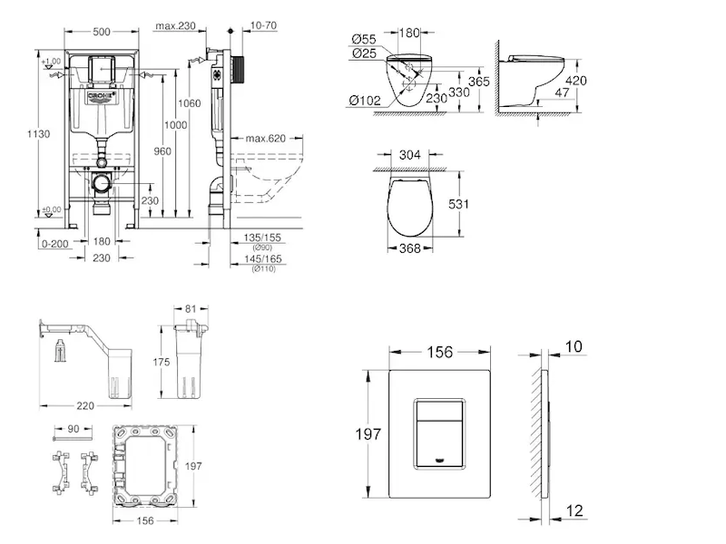 - pro všechna splachovací tlačítka GROHE s rozměry 156 x 197 mm