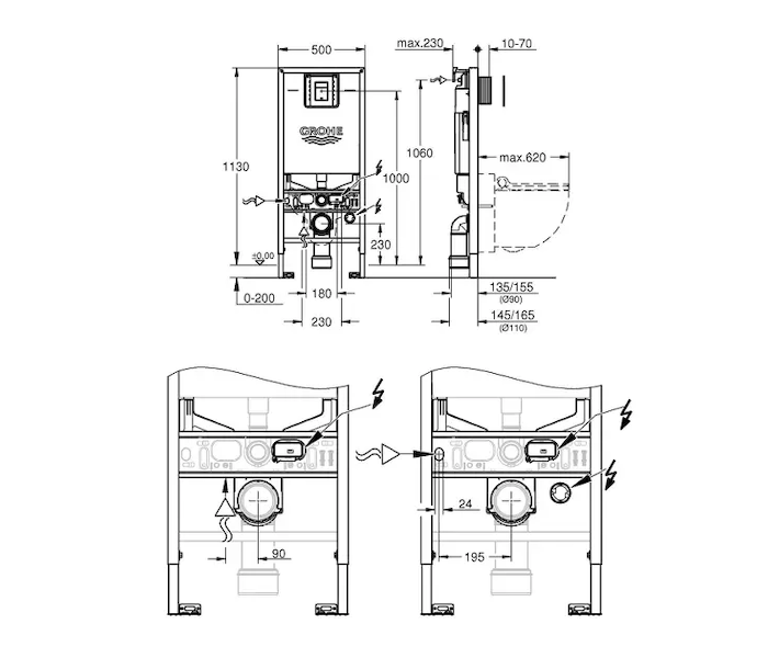 - nástěnnou přípojku pro předstěnovou montáž Grohe Rapid SL